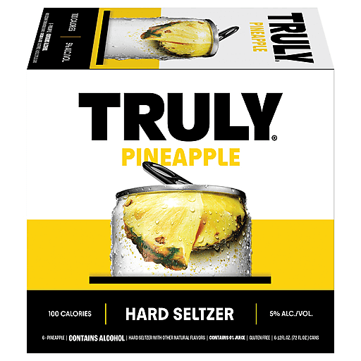 Bright & mellow. Truly Pineapple Hard Seltzer features bright, tropical notes that are bursting from the can. Truly Pineapple has the perfect balance of flavor to transport you to the beach after your first sip. Whether you’re living it up with friends or family, or getting fully horizontal on your couch, no occasion is complete without a Truly Hard Seltzer. Each 12oz. can has 100 calories, 5% alc./vol. and 1g sugars for refreshment that won’t weigh you down. 6 pack, 12 fluid ounce cans.