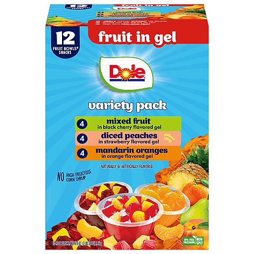 Dole Variety Pack Fruit In Gel Fruit Bowls Snacks 12 ea