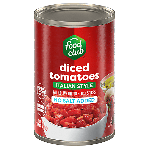 Food Club No Salt Added Italian Style With Olive Oil, Garlic & Spices Diced Tomatoes 14.5 oz