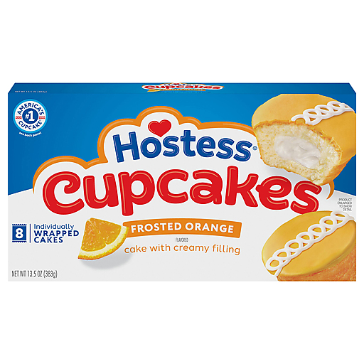 These orange-flavored HOSTESS CupCakes will take your taste buds someplace sunny and 75. Moist cake is filled with a creamy center. The flavorful orange icing is topped with THE ORIGINAL SQUIGGLE you know and love. Each cupcake is individually wrapped and sealed for freshness. Grab one and LIVE YOUR MOSTESS with a cold glass of milk or your favorite beverage. Share them with family and friends to brighten up their day. They're so good, we wouldn't be surprised if you kept all of this orange-flavored goodness to yourself. Whether you're at home enjoying a moment of peace, off to work, or treating the kids to a snack, these cupcakes will bring a smile anywhere at anytime.