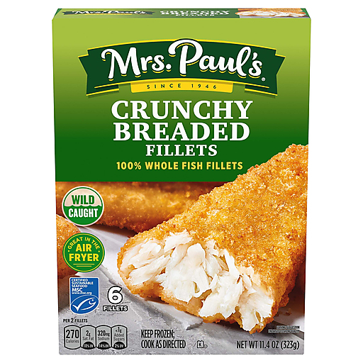 When you want delicious, crispy fish fillets, reach for Mrs. Paul's Crunchy Breaded 100% Whole Fish Fillets. This mouthwatering, wild-caught pollock is surrounded by a golden breading that is the perfect combination of flavor and crispiness. Whether you are adding them to your favorite fish taco recipe, drenching them in tartar sauce or simply eating them all by themselves, you will love these tasty fish fillets. Easily prepared in the air fryer or the oven, they're a natural source of Omega-3s*, are a good source of protein, with 12 grams per serving, and are certified sustainable seafood** so you'll feel good about what you're feeding your family.