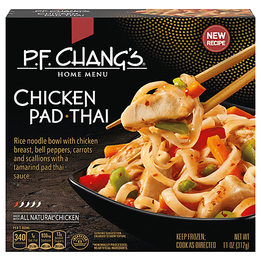 Experience a delicious, restaurant-style dining experience at home with P.F. Chang's Home Menu Chicken Pad Thai Noodle Bowl. Featuring rice noodles with chicken breast, bell peppers, carrots and scallions with a tamarind Pad Thai sauce for frozen meals with authentic Asian food flavor. Made with all natural* chicken, this frozen meal contains no artificial flavors, colors or preservatives, ensuring delicious and satisfying frozen entrees every time. Ideal for those craving something special, these microwave meals provide the gourmet experience of restaurant-quality cuisine in quick frozen meals that can be prepared in the comfort of your home. Simply cook this frozen food in the microwave according to the package instructions for easily prepared meals in minutes. Store these 11 ounce frozen entrees in your freezer until you're ready to enjoy. Stay in. Eat like you didn’t.