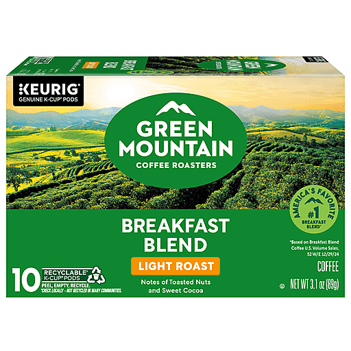 Green Mountain Coffee Roasters K Cup Pods Light Roast Breakfast Blend Coffee 10 ea