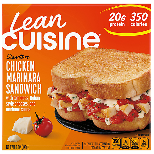 Our Lean Cuisine® Chicken Marinara Sandwich is an excellent source of protein. The frozen chicken sandwiches are made with white meat chicken with tomatoes, Italian-style cheeses, and marinara sauce on bread. At Lean Cuisine®, we are committed to helping you eat well in a way that’s sustainable for you, with delicious and nutritious quick meals. Stock up on our delicious Lean Cuisine® frozen dinners today. Always lean. Always delicious.