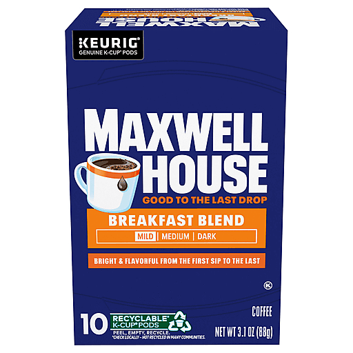 Maxwell House K Cup Pods Mild Breakfast Blend Coffee 10 ea