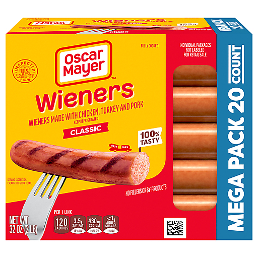 Grill up a winner. Oscar Mayer Classic Wieners Hot Dogs are made with no fillers or by-products, so you can enjoy the great taste and quality you expect. Grill our mega pack of hot dogs for a big family BBQ, roast over a campfire or simply cook in the kitchen for a quick and easy meal. Top your hot dog with ketchup and mustard, or try regional favorites like chili or sauerkraut. Keep the 32-ounce, 20-count box of hot dog wieners in your refrigerator for heat-and-eat convenience at lunch, dinner or snack time.