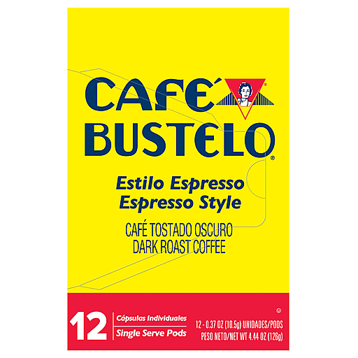 Cafe Bustelo Single Serve Pods Espresso Style Dark Roast Coffee 12 ea
