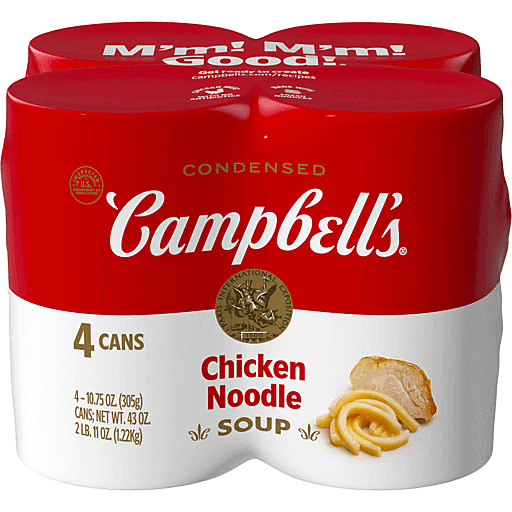 Campbell’s® Condensed Chicken Noodle Soup is made with chicken meat with no antibiotics and delicious, fresh noodles. America's favorite soup, Campbell's Condensed Soup has over 125 years of excellence, and is the start to a great meal. Campbell's Chicken Noodle Soup has a nostalgic flavor that warms both body and soul. Heat it up and pair with crackers or a sandwich for a quick, comforting meal.