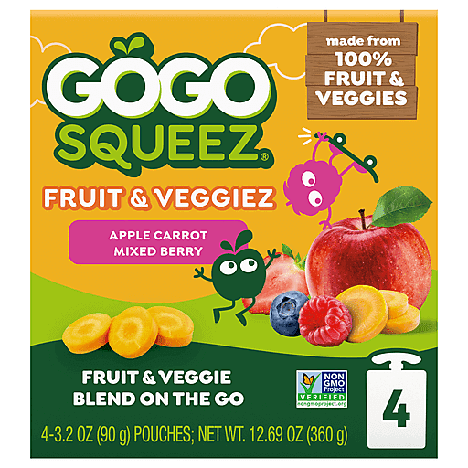 Go Go Squeez Apple Carrot Mixed Berry Fruit & Veggiez 4 ea