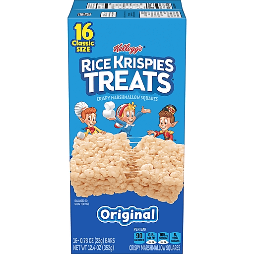 Enjoy the fun of everyday moments with the irresistible taste of Rice Krispies Treats Original marshmallow cereal bars. Create memorable moments with each and every delectable square that pulls apart to reveal ooey, gooey goodness. Made with crispy rice cereal and the taste of soft marshmallows, each bar is a delicious, ready-to-eat treat wherever you go. A classically delicious treat, these individually wrapped marshmallow bars are perfect for enjoying together; Enjoy at home or take a few with you for traveling, lunchtime, at the game, or pack for school snacks. They're easy snacks to share with friends and family. Make someone's day by adding Rice Krispies Treats marshmallow cereal bars to goodie bags, gift baskets, and care packages. Satisfy your sweet craving with the goodness and on-the-go convenience of Rice Krispies Treats Original marshmallow cereal bars.