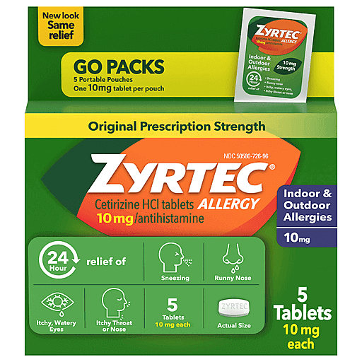 Zyrtec Original Prescription Strength Tablets 10 Mg Allergy Go Packs 5 ea