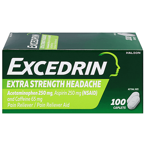 Excedrin Extra Strength Headache Relief Caplets alleviate various types of pain fast. Excedrin works in 3 ways to relieve headaches: it blocks pain signals, elevates your pain threshold and uses caffeine to enhance the pain relief effect. Available in convenient caplet form, this non-prescription pain medicine works as hard as you do, combining aspirin and acetaminophen with caffeine. These active ingredients create a powerful formula with two pain relievers and a booster to offer temporary relief of aches and pains caused by headaches, colds, premenstrual and menstrual cramps, toothaches, muscular aches and arthritis. For some, relief with this Excedrin caplets can start working in 15 minutes. Get headache relief fast with Excedrin, the headache expert.