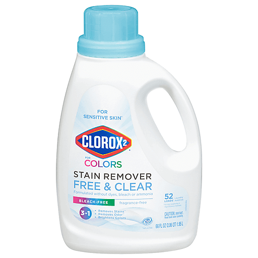 Attack your toughest stains like food, grass, blood, set in stains and more* with Clorox 2 for Colors Free and Clear Stain Remover and Laundry Additive for sensitive skin**. Tough on stains but gentle on clothes***, this powerful stain remover is formulated without dyes, bleach or ammonia, making it suitable for your family’s clothes***. This fast and powerful stain remover activates instantly* and even removes 3X more stains vs. the leading value detergent alone*. The 3 in 1 formula removes stains*, removes odor* and brightens colors and whites. Safe for use in standard and HE washers. Win the battle against stains and odor with Clorox 2 for Colors Free and Clear Stain Remover and Laundry Additive.