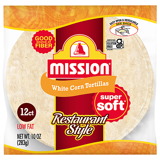 Mission Low Fat Super Soft Restaurant Style White Corn Tortillas 12 ea