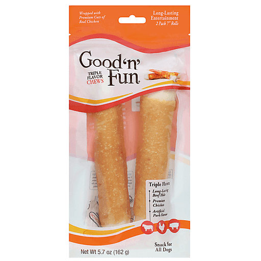 Good 'N' Fun Chews Triple Flavor Chews 7 Inch Rolls Snack For All Dogs 2 ea