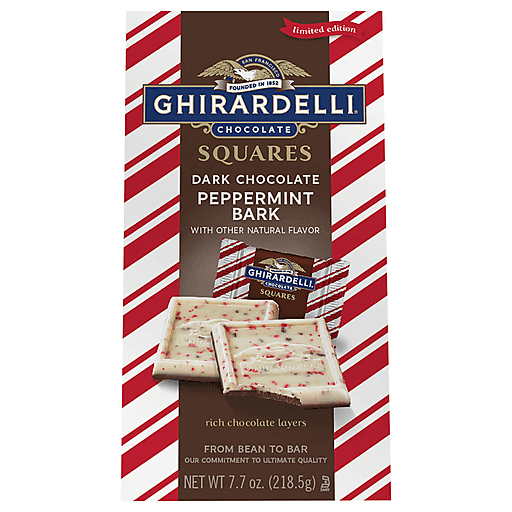 Celebrate the holidays with GHIRARDELLI dark chocolate peppermint bark SQUARES. Each piece combines smooth, rich dark chocolate and festive peppermint flavor for a perfect balance of flavor and texture. Ideal for gifting, entertaining, or treating yourself, these individually wrapped SQUARES bring sparkle to every candy dish. Crafted with responsibly sourced cocoa and premium ingredients for a smooth, indulgent experience. GHIRARDELLI Makes the Holidays A BITE BETTER.