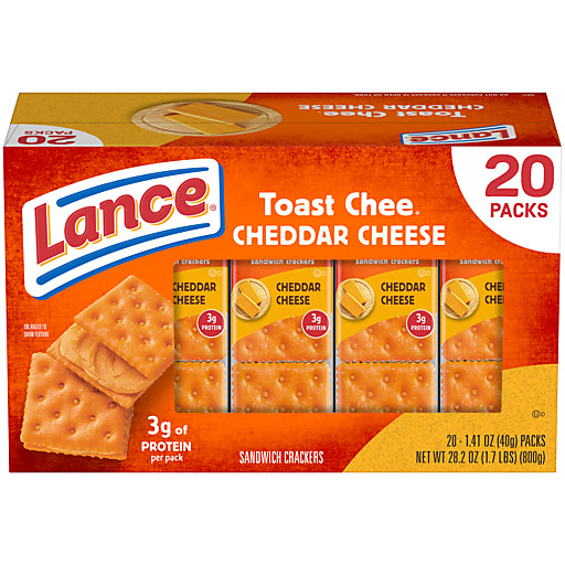 For more than 100 years, Lance has been fueling families with delicious snacks. One of our all-time fan favorites is ToastChee crackers, a delicious cheddar cheese and cracker creation. These are a true original and made to satisfy. At Lance, sandwiches mean more: they aren’t just two somethings with whatever in the middle. ToastChee crackers are fresh-baked crackers paired with a real cheese filling for a classic and tasty snack. Or, as we say, a Lance Sandwich cracker is two awesomes on the outside with totally incredible in the middle. You get 20 cracker snack packs, each with 6 sandwich crackers per pack. That means you can enjoy these convenient cheese and cracker creations during lunch breaks, for afternoon snacks, or snacking any other time - even on the go. The next time you’re ready to take a moment or need a quick pick-me-up, be sure to snack with your one and only Lance Sandwich crackers, the king of all sandwich crackers. Bring it!