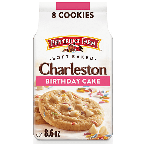 These delicious Pepperidge Farm Charleston Birthday Cake Cookies are baked with rich, white chocolate chips and colorful sprinkles, and the result is simply delicious. Satisfy your most decadent cookie cravings with soft and sweet cookies that are perfect for a midday treat or to serve at your next get-together or celebration. With 8 Pepperidge Farm Charleston Birthday Cake Soft Baked Cookies per bag, there’s always enough to share. And what better way to celebrate than with a cookie! For Pepperidge Farm, baking is more than a job. It's a real passion. Each day, our bakers take the time to make every cookie, pastry, cracker, and loaf of bread the best way they know how – by using carefully selected, quality ingredients. With comforting goodness baked into everything we do, you’ll want to have Pepperidge Farm Charleston Cookies on hand and ready to serve.