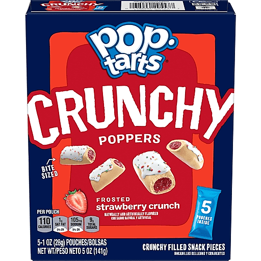 Pop-Tarts Frosted Strawberry Crunchy Poppers are your go-to when you’re looking for a crunchy, sweet snack. They’re small, light, and seriously pop-able. Crunchy on the outside and bursting with strawberry-flavored filling on the inside, each bite ends sweetly with delicious sprinkles and crackly icing. They’re fun to eat! Munch on a handful of these little pieces anytime, anywhere. When that 3 o’clock craving hits, grab a snack that’s ready to eat straight from the pouch; Whether the kids are looking for a crunchy strawberry afternoon snack or you need a pick-me-up at the office, discover a crazy good treat that’s no mess, no prep, and super satisfying. Pop-Tarts Crunchy Poppers are great for handing out at classroom parties, after the game, relaxing at home, or whenever your sweet tooth is calling. Just tear open a pouch and enjoy a crunchy strawberry snack that’s got the legendary flavor of Pop-Tarts wrapped in a small, delicious pastry shell. Reward yourself, you deserve it. Hello, sweet moment of happiness!