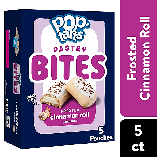 Indulge in a sweet treat with Pop-Tarts Frosted Cinnamon Roll soft baked pastry bites. Open a pouch and grab a soft and fluffy pastry, bursting with delicious cinnamon roll flavor. These snack-sized bites are conveniently packaged in portable pouches and are perfect for on the go. Bite into these fun-to-eat pastries anytime, anywhere, no toaster needed! Craveable, fluffy and light, these party-in-a-pack pastry bites have a delicious filling and sweet, sprinkled frosting; A fantastically fun and crazy good snack for the whole family. Pop-Tarts soft baked pastry bites are an easy win for mid-morning snacks and lunchboxes. These ready-to-eat treats are great for your busiest, on-the-go moments. Keep them in your pantry or bring some in the car for a quick snack on the road. Share Pop-Tarts pastry bites and surprise friends and family with a snack they’ll be delighted to try. Just open the pouch and savor the moment with Pop-Tarts Frosted Cinnamon Roll pastry bites.