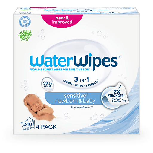 Introducing New & Improved WaterWipes, the World’s Purest Wipes for Sensitive Skin. Families can continue to trust WaterWipes Sensitive+ New Born & Baby Wipes to gently clean, care and help protect sensitive skin - now with a 2X stronger†. Thicker and softer wipe, and a fresh new look. Our plant-based & plastic free†† wipes maintain the same purity, with just two carefully selected ingredients: 99.9% ultra-purified water and a drop of fruit extract. Our ultra-purified water undergoes a 7-step process, making it even purer than tap, boiled, or bottled water. WaterWipes remain unscented, hypoallergenic, and gentle on sensitive skin. They are clinically proven to be kind to baby’s skin—giving parents the confidence to help protect their children in the purest way possible.